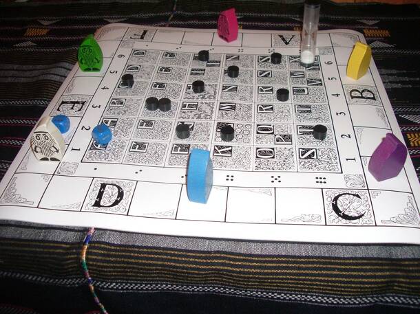 Each player uses his letter cards to try form a word that matches the group on the die (animals, for example). You begin with three letters. Then on each player´s turn a new card is drawn until a player can compose a matching word. When a word is formed, the round ends and the player who formed a word is rewarded with a wooden coin. The aim the game is to...