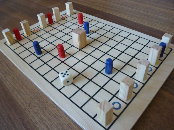 In Borderline, players race to bring their pieces across the board to their home row. The board is arranged in two 6x6 fields, separated by a two square "borderline". Rolling two dice, players bring pieces onto the board and move them, with each die being used to move one piece. Pieces may only move two spaces in a single direction before being forced to...