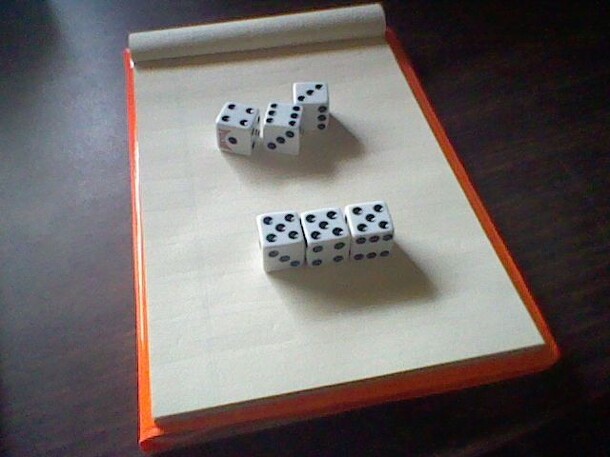 From the box: "Roll the dice and pick two to form a two-digit number. Then circle on the score pad. This strategic game of 3 in a row may sound simple, but do you have what it takes to cleverly select the best numbers to circle, while blocking out your opponent? Quick, fun and easy to learn, this exciting dice game will have everyone clamoring for more!"...