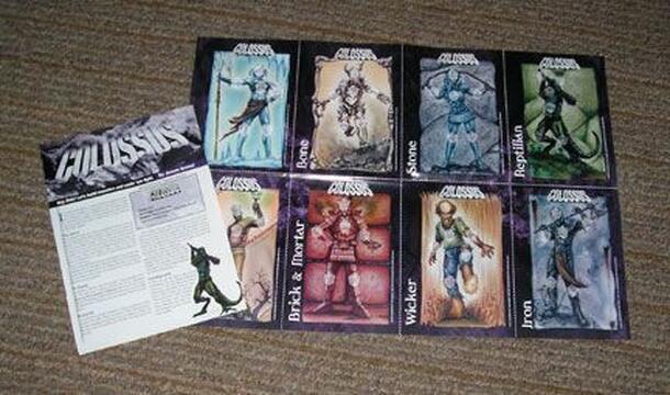 Bonus game included in Dragon Magazine #271. Through Research, Development, and Fighting, you must improve your creature until he has a 6 or more in each of his body areas - 2 arms, 2 legs, heart and head. Equipment: Pencil and Paper, six 6-sided dice, at least five 8-sided dice. From the intro paragraph: In Colossus, each player is a mad scientist...