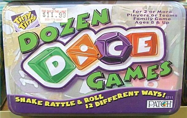 This is one of the games in the Tiny Tins series by Patch Products. This game comes with rules for a dozen different dice games as well as the neccessary six, eight, and ten-sided dice. The games included are: 21! High die, high die, high die, ho! Chase the Ace Straight up to 100 Ship/Captain/Crew Liar's Dice Hacker's golf Rock around the clock Sinister...