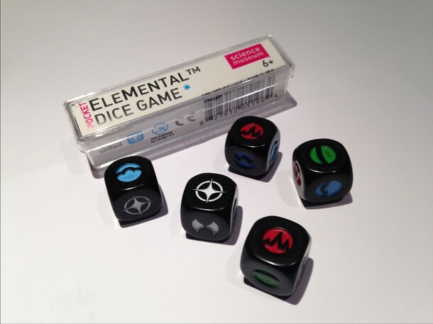 Elemental dice is inspired by the classical elements of Earth,Water,Fire and Air. This five dice game comes with rules for 2 different games; Elemental Battle (played with 2 dice) and Elemental Bind*. --- Elemental Battle: Each player Taket 2 dice. One spare dice is left aside. Each player throws one dice in turn. the strongest element thrown wins and the...