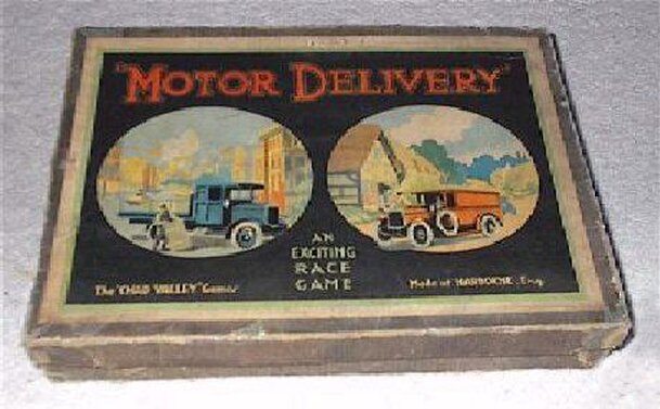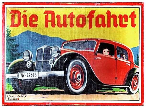A circa 1930's English Spears board game. Roll the dice and move your markers on the bright artwork board, to simulate taking a trip through the countryside. Various events can occur during your trip, depending on where you land. The goal is to be the first to reach the center position, the family picnic spot. Plain markers, but a nice board with great...