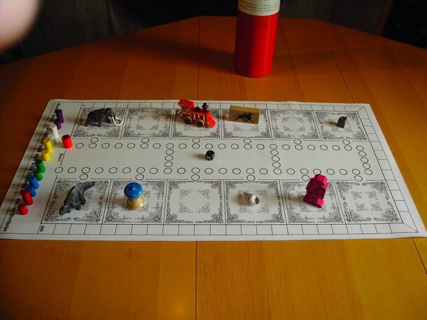 Commercial game, related to Monopoly, for the purpose of promoting the city of "Münster", in the West of Germany. The players move around a board, which consists of 40 squares. On most of the squares are parts of companies, which can be bought. The companies have values between 1000 and 8000. Three companies are combined by a color. Whenever a player lands...