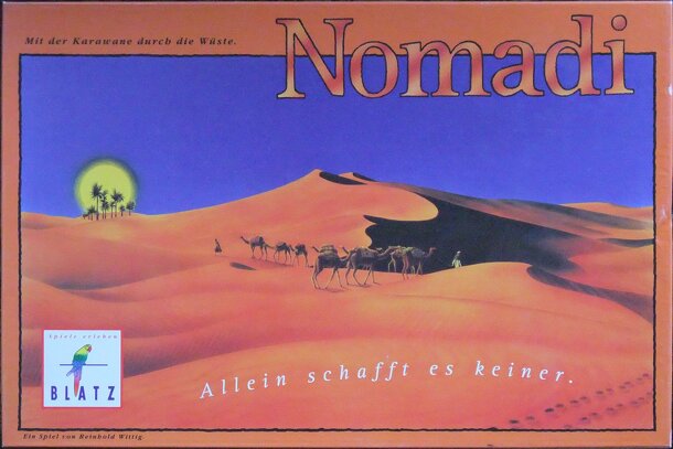 A game of moving camels across the desert. Each player has a number of camels and tries to get them across the desert first. However no-one survives in the desert alone - each camel must always be adjacent to at least one other camel. The game board depicts a desert with a starting area in one corner and a finish area in the opposite corner. There are two...