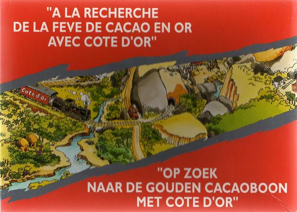 A promotional game from chocolate factory Côte d'Or. The mechanics are based on the Game of Goose. The players try to be the first to reach the golden cacao bean. They do this by rolling the dice and having a lot of luck. When it is your turn you roll the dice and move your pawn based on your roll towards the golden bean. When you land on a green or red...