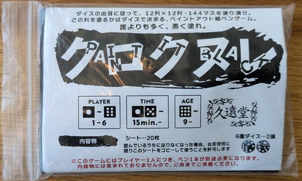 Paint It Black is a roll and write game where players try to fill in the boxes of their sheet....in black! The active player rolls two die, sum them, and all of the players fill in a number of squares equal to the sum, in any of the rows or columns matching either dice. Bonus actions can be achieved by filling in squares in the shape of + or -. After 12...