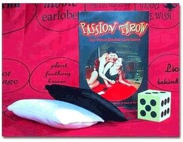 Passion throw is a sex game for two consenting adults. It uses a sheet with spaces printed on it. Each space has a foreplay command to follow. Players take turns tossing the foam die and moving their playing piece (a satin pillow) around the board. The player who reaches the last space on the board chooses the first lovemaking position for the two to...