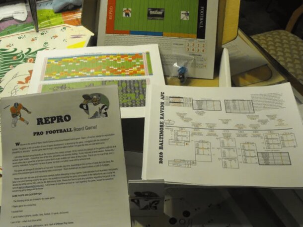The game comes with a single action deck to produce play results, Charts for Passing, Running, and Kicking and special teams play. It includes a sturdy playing field to track the action on the field, dice, markers and all playing parts necessary for the game, including scoresheets to keep stats if you are so inclined. The game produces realistic College...