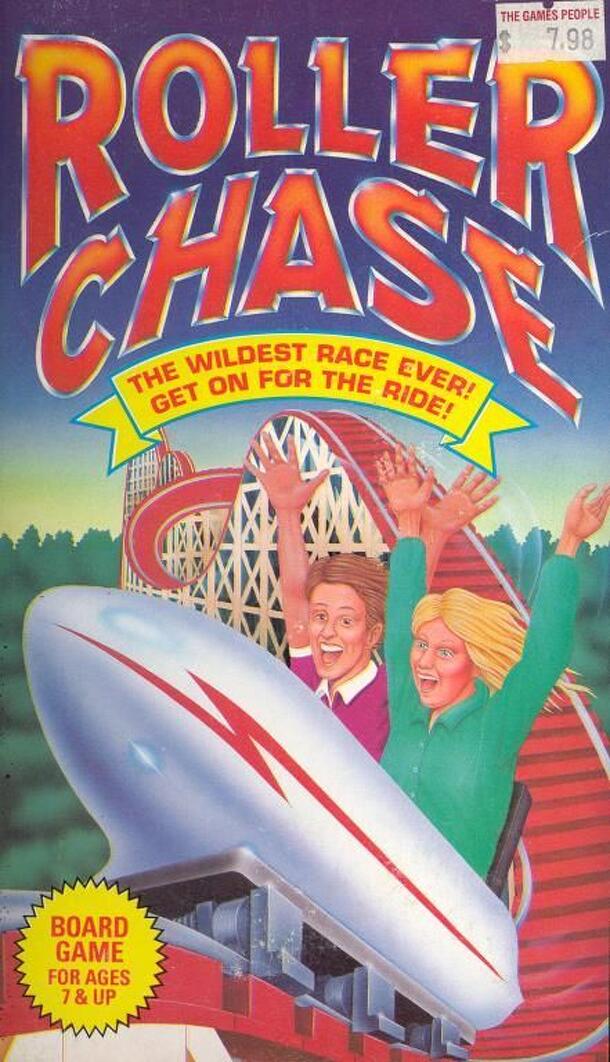 Roller Chase The wildest race ever! Get on for the Ride! Board Game for ages 7 & up 2 - 4 players Playing board 10½" x 10½" Object of the game: Be the first to go around the track, collet all four flags and return to your starting point. This game comes in a small box with all the components in a yellow ziplock baggie. The board is 6 pieces that fit...