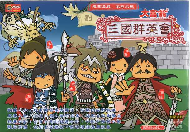 三國志之武將瘋雲錄 (Three Kingdoms: Chronicles of Warlords) is a classic board game that combines elements of card games and the traditional Monopoly-style gameplay, set in the historical period of the Three Kingdoms. This game was first published in the early 1990s by Tongcai Art Development in Taiwan and later introduced to Mainland China. Game Components Game...