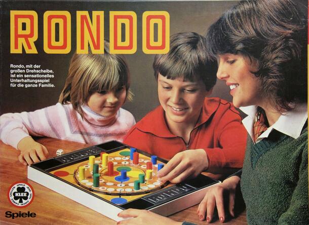 Rondo is a game for 2-4 Players, with a rotary disk on the game board. The Rotary disk is transparent. Except the start and end fields the whole way with all fields are covered with this disk. The path on the board is separated in 2 concentric circles, with the private starts at the outside and the private destinations in the middle. The base rule is a...