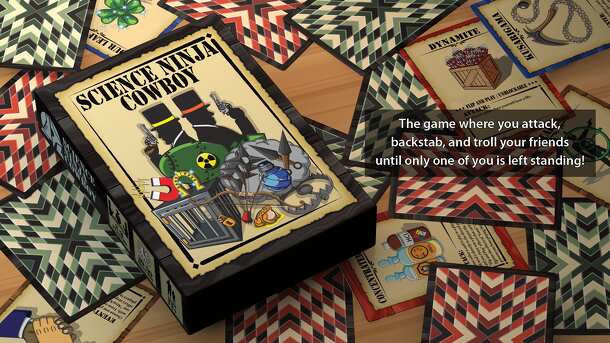 Science Ninja Cowboy is an action-packed card game where you and your friends face off in a no-holds-barred battle to the death! Each player starts with five cards in their hand, and five cards face down in front of them as lives. You take turns drawing and playing cards, and battle through each round until the only player left with lives wins the game....