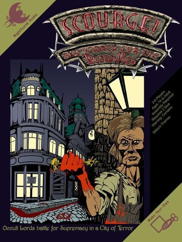 From the Publishers' website "Scourge! is the first game in our line of Make-Your-Own games. When you receive your book cut it out and assemble it yourself and your ready to play. In the game af Scourge! you take on the role of a cult member bent on taking control after the mysterious death of your leader. Build an army of street thugs and demons and amass...