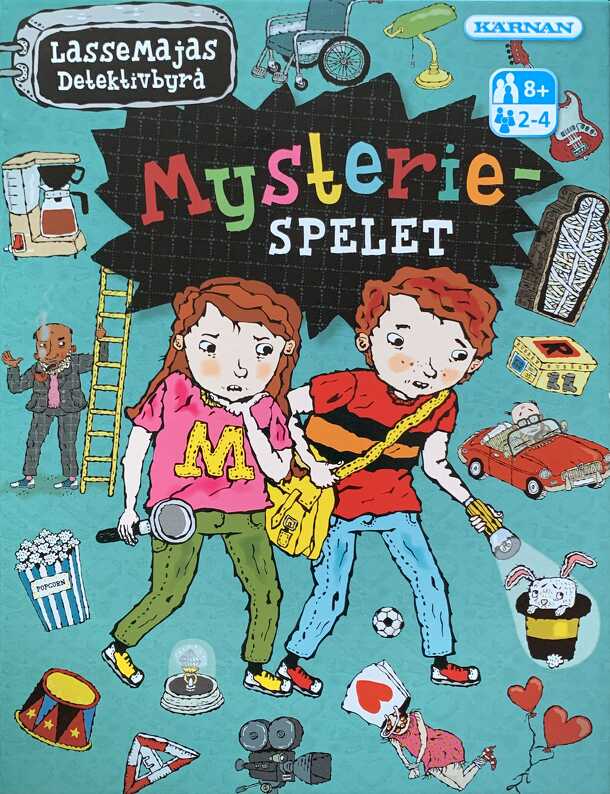 Mysteriespelet is divided into two parts. In the first part you compete to be the first to match pictures. One player flips up a playing card showing four different pictures. He then rolls the die to determine what picture to find. Then all players tries to be the first one to find the picture on a grid. If you succeed you win the card. In the second part...