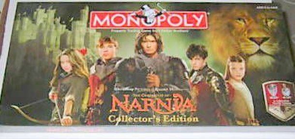 This Narnia version of Monopoly includes graphics from the 2005 movie "The Lion, The Witch, and The Wardrobe" and the 2008 sequel "Prince Caspian". The game features collectible pewter game pieces and unique character cards. Gather power against the White Witch and the Telmarine Army through buying, selling, and trading Narnian locations. The landmarks...
