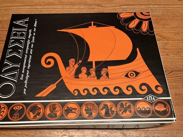 Colorful comics-style artwork adorns the board for this roll-and-move point-collection game that projects a strong theme of the Odyssey. Peril and Destiny cards provide variety to the basic 2d6 movement, as well as the occasional "take that" opportunity to penalize another player. If you get too many Peril cards, you return to the beginning of the map...