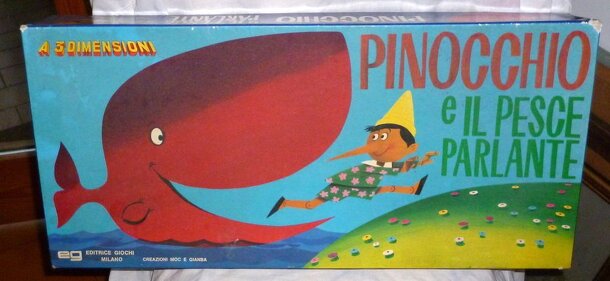 The game includes a 3D representation of the Pinocchio's world (the village and the sea with the whale). The players move their pawns to both the mainland and the sea trying to gain gold coins and, in the same time, trying to avoid the various hazards because a player could be eaten by the whale during the game. If the whale was selected, the player should...