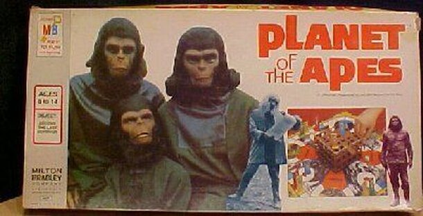 The game is based upon the movie Planet of the Apes. The object is trap all of your opponents in a cage in the center of the board. On each turn, you roll two dice and move yourself with one and an opponent with the other. If you land on a space that matches your pawn's color, that pawn is considered safe and cannot be moved by an opponent. If an opponent...