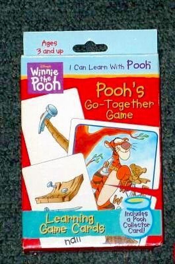 A path with spaces of assorted colors is assembled by color matching the edges of large cards. The players then take turns moving a single pooh figure with a color-coded spinner. If Pooh is on a space with a printed honey pot, the player takes a cardboard honey pot counter. When Pooh reaches the end of the path, the player with the most counters is the...