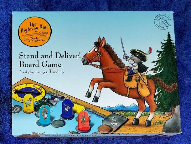 Board game featuring the Julia Donaldson & Axel Scheffier character, The Highway Rat (and friends) from the World of The Gruffalo. Art of box, board and character playing pieces is true to Axel Scheffier's distinctive work for the books. A compact and attractive package (box is 27cm x 21cm x 5cm), the board folds into four and features a built-in spinner....