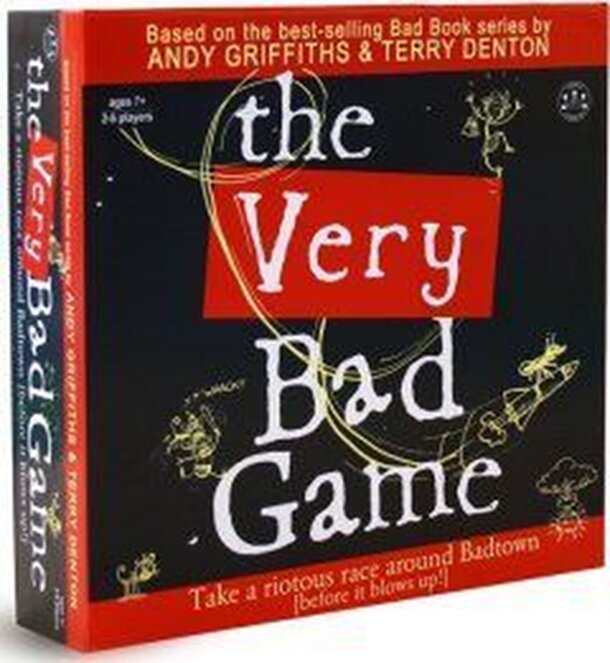 The Very Bad Game is a board game based on the wacky characters and themes of the immensely popular Bad Book series by Andy Griffiths - one of Australia's most successful writers. How to play: "For ages 7 and up, the game is easy to play and always fun. Players race around Badtown trying to find the 4 missing pieces of their lost pet. But it's not easy!...