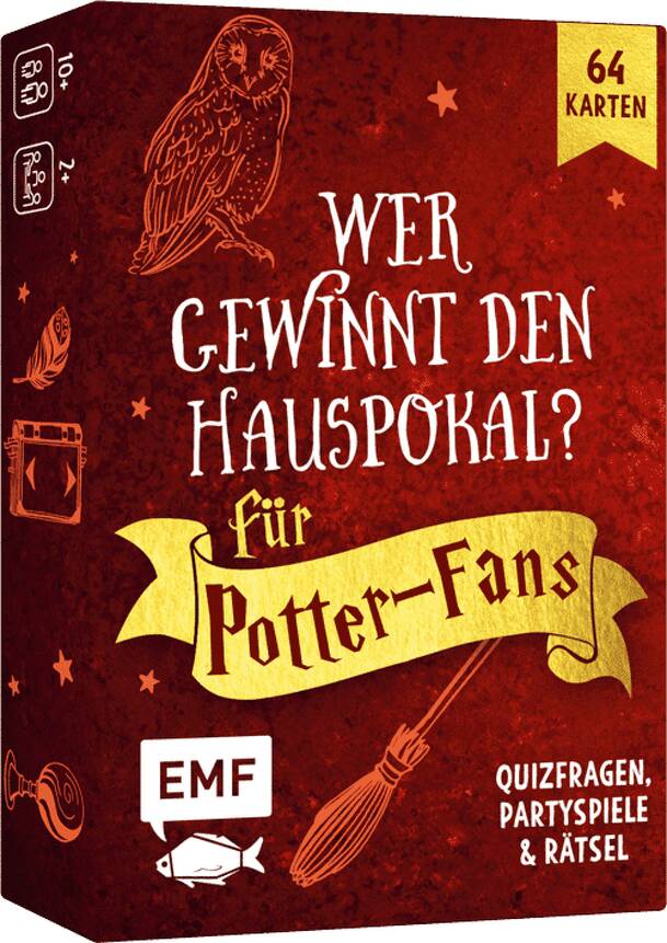 Who will win the house cup? This card box provides lots of fun! Who is a real Potterhead and knows the most about the wizarding world? Over 60 action cards with exciting quiz questions, tricky puzzles and brainteasers as well as fun activities provide lots of magical fun for all Potterheads aged 10 and over. DIY Quidditch, broom race or catching flying...