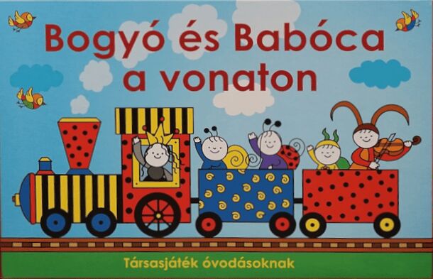 Alfonso (or Alfonz - the male cricket; orange pawn), Bubble (or Gömbi - the baby beetle; yellow pawn), Berry (or Bogyó - a male snail; blue pawn) and Dolly (or Babóca - a female ladybug; red pawn) are rushing together to the train. Will they make it on time, or will the train driver (the Ant queen; green pawn)beat them to it and the train leaves without...