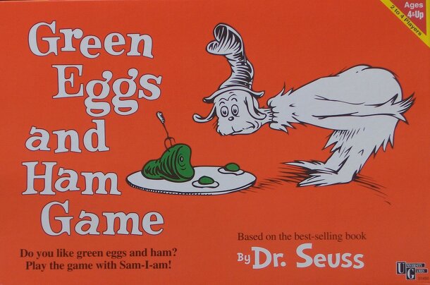 From the box Do you like green eggs and ham? If you'll eat them on a boat, and if you'll eat them with a goat, then your family will enjoy this delightful board game. The Green Eggs and Ham Game is easy to learn, and designed so that children and parents can have fun playing together. Just use your memory to match cards to spaces on the board — make three...