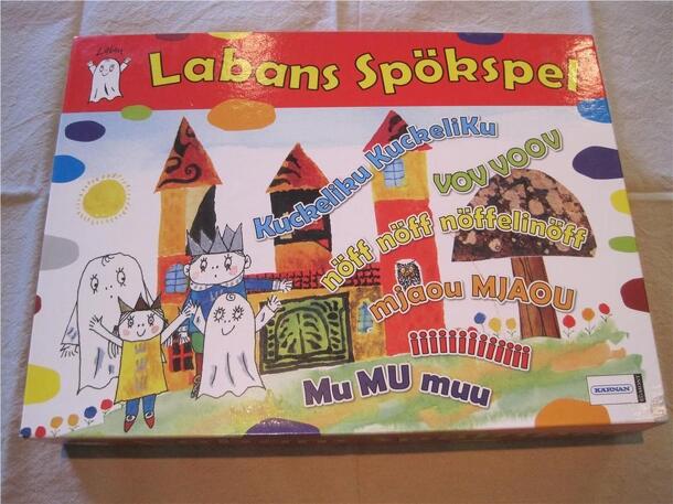 Swedish children´s game featuring spöket Laban (Little ghost Godfrey) from the books by Inger and Lasse Sandberg. The friendly ghost must practice some ghostly sounds. Players move around the board, representing the castle, and collect and imitate various sounds. The winner is the player who is the first to reach the Ghost Room and make the Great Ghostly...