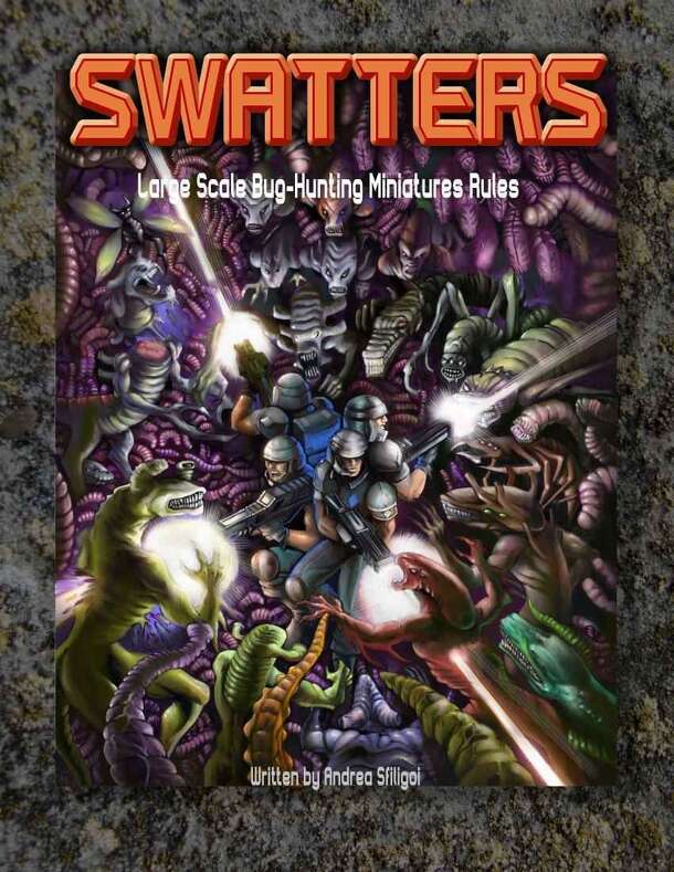 Based on the Song of Blades engine and written by Andrea Sfiligoi, Swatters lets players create sci-fi battles between humans and alien bugs from books, movies or their own imagination. Each player or team pits their human or alien forces against their opponent using miniatures and a tabletop area to create a battlefield. The game includes rules for...