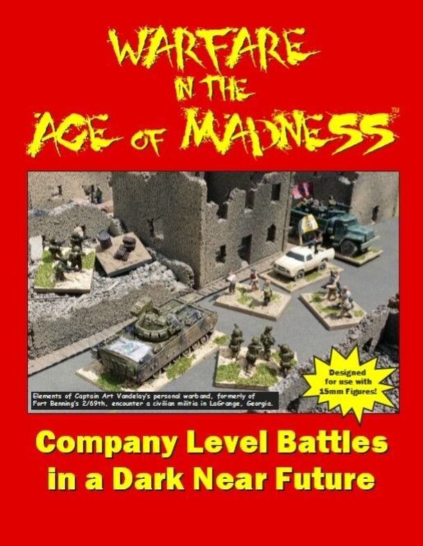 From the publisher: Warfare in the Age of Madness is a game of company-level battles in a dark near future. Designed for 15mm figures, opposing forces fight to survive by scavenging supply caches from the battlefield, stripping enemy casualties of their gear, and raiding the enemy field camp. Features include easy to learn rules, small armies of just a few...