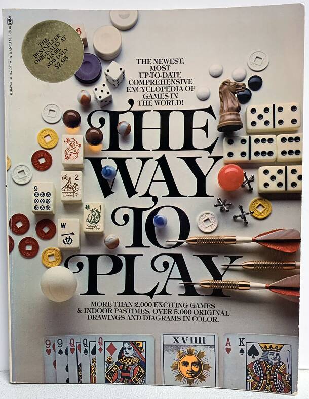 Full BGG WIKI, see: The Way to Play Summary: The Way to Play, circa 320 pages, first published in 1975. From the dust jacket: "All over the world people play games: from primitive tribesmen to restless executives, and from birthday toddlers to aging millionaires. Wherever people gather, competition - and love of competition - appear. Even the lone mind...