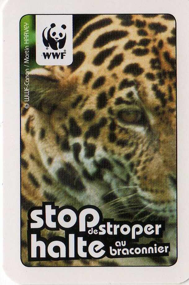 The game is played by 2 till 4 players. The aim is to get play all your cards. There are 5 animals reprecented by red cards.(orangutan, polar bear, marine Iguana, cheetah, black rhinoceros) and 4 green cards of each animal and 1 card for the poacher. put the 5 red card op the table (in the folowing order 1 orangutan, 2 polar bear, 3 marine Iguana, 4...