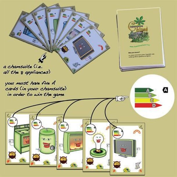 A-topia® exposes the players to an energy rating system of appliances similar to the one used in the European Union. It adds knowledge to the information one may need to look into prior to purchasing home appliances. The battle is set between two players to achieve a household with the least energy consumption. There is a point scoring system in the game...