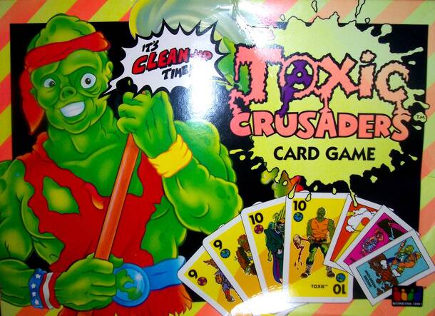 Players battle Good Guy and Bad Guy cards for the right to clean up Tromaville. Mini-cards are dealt in a 'Memory' fashion. Numbered cards are flipped over, with the winner attempting to make matches from the memory board. The player with the most matches wins the game. Box Contents: 18 Good Guy & Bad Guy cards, 36 Toxic Clean-Up Time mini cards, 1 card...
