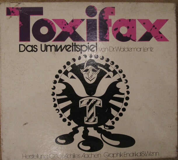 A complex simulation about raising industrialization and associated incremental pollution. The game is unbalanced: Goal of the "Toxifax"-player is, to pollute the other countries until the are bankrupt. The "country"-players try to clean their towns and finally confirm a test. The game was produced by the former printing shop "Achilles" in Aachen on a very...