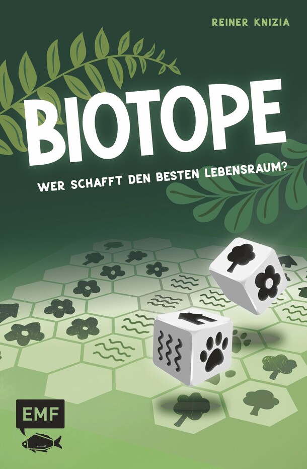 Each turn in the roll-and-write game Biotope, one player rolls the dice, then everyone takes their turn at the same time, trying to place the symbols skillfully to create the best ecosystem, while not leaving any gaps along the way. You need to think tactically...and hope for a bit of luck. Four game scenarios offer variety and extra fun: Will you compete...