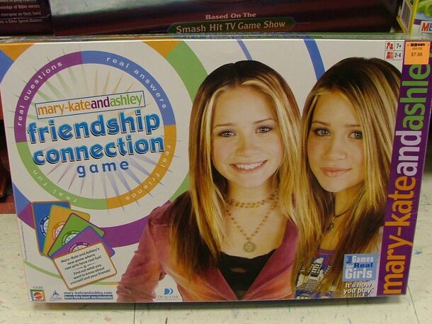 Players move around the board drawing cards and answering questions about themselves. Questions range from favorite fashion styles to things you might chat about online. The player writes down the answers in a privet journal and the other players try to guess the answer. Correct guesses win Mary-Kate and Ashley friendship accessories. The first player to...