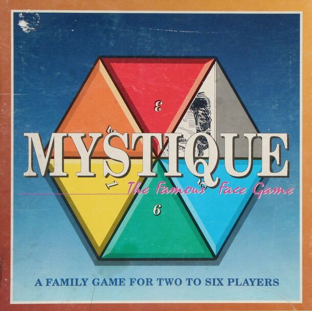 From the box: "Know you all a comic's chin? A stately nose, a golfer's grin? A President's brow, a pop star's cheek? The name?....alas.... the game's Mystique." MYSTIQUE is a new and exciting game for all the family. A numbered casket contains 75 famous faces from the past and present. As the face is gradually revealed the players attempt to identify the...