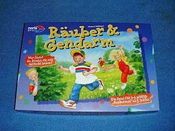 The children are playing Robbers & Police, in the game the players are the police trying to find the the robbers in their hiding places. 48 cards are distributed face down on the board, 12 of them are robbers. Players roll the die and move along the paths on the board. If they suspect a card to hide a robber, they pick it up and turn it over. If the...