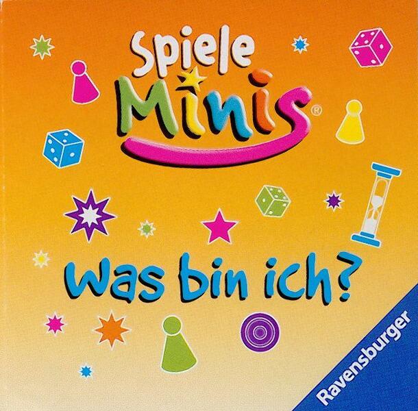 "Spiele Minis" is a series of small surprise boxes (i.e., you don't know what you get) from Ravensburger. They are meant to be carry-on or gifts, suitable for children ("Mitbringspiel"). Some of the cubes contain actual games, others contain magic tricks, puzzles etc. "Was bin ich?" ("What am I"?) is a small deduction game, comparable to "What's My Line?"....