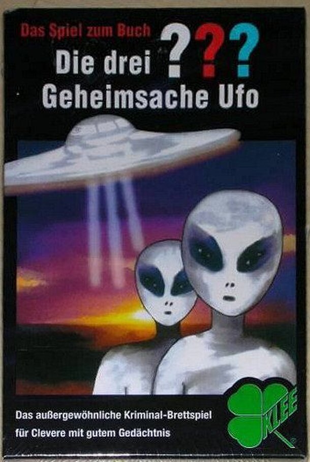 Deduction card game based on the Three Investigators stories. The 3 ??? are Jupiter, Bob and Pete (in the German version - Justus, Bob and Peter). There are 3 types of suspect cards, place cards and mystery cards and 3 cards which show all 9, plus 3 detective cards (Justus, Bob and Peter), 4 player pieces and the gameboard. Guess the gameplay could be...