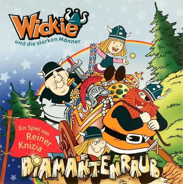 Vicky the Viking based boardgame in which the players try to obtain diamonds. There are several phases in which the players place one of their hand cards on a personal board, then all cards in that particular position are compared and the winner gets a diamond (bounty depends on the position of the card on the board, winning depends on different symbols on...