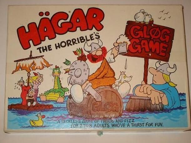 From game box: Hägar the Horrible's Glog Game introduces players to Hägar's lifestyle, a constant battle to keep Helga from confiscating his drink supplies. Hägar the Horrible is a hard working barbarian businessman-he's in sacking and looting. He has a typical Viking's hard life of drinking and working-plundering cities and drinking the proceeds. His wife...
