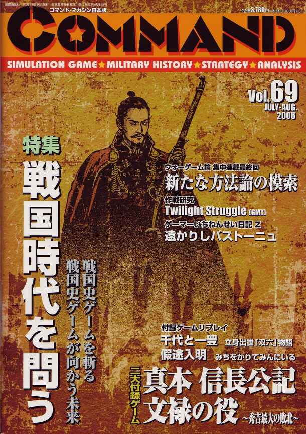 Chō Gen Ki (Record of Chōsokabe Motochika) covers battles in the Shikoku region fought by Chōsokabe Motochika. Six scenarios are included. Each players control one or more clans. Each clan regroups combat units. There are four action segments in each game turn. The number of segments during which each troop can act is decided by commander's activation...