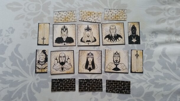 From the publisher: In this fast-paced multi-round game, you control a small castle of three walls, behind which you will defend your Princess, fire your Catapult, and rule with your shrewd and protective King. Simultaneously, you will send forth your own Knight to abduct said rival’s Princess. For each game purchased, you will receive 14 game cards, an...