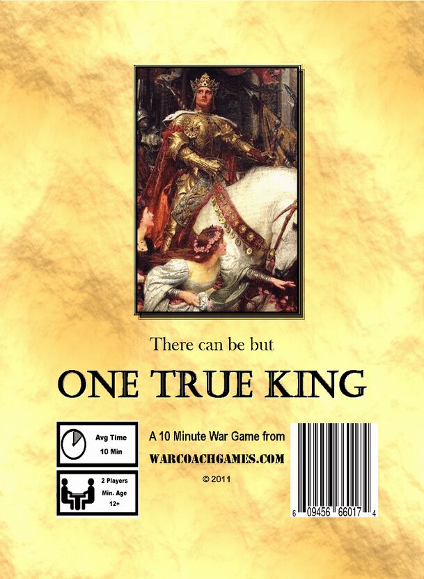 The King is dead and three powerful Lords vie for the throne. They will use everything in their power to win (Military Power, Allies, Knights, Nobles, Spies, the church, mercenaries, whatever it takes). Although 3 contend for the crown, in the end there can only be ONE TRUE KING! In the game, each player plays out 3 columns of cards consisting of Knights...
