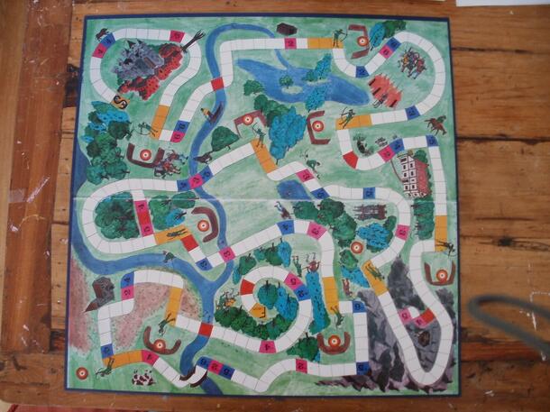An original Archery Board game with the theme of Robin Hood Fun and easy to play a game for all the Family (Description from the front of the box) Contents 1 Board 1 Target stand and boss 6 Players and stands 6 Sets of Arrows 6 Score Pads 2 Coloured dice 2 Spotted dice ! dice Shaker 1 Set of Rules The Theme really is Medieval and Archery rather than...