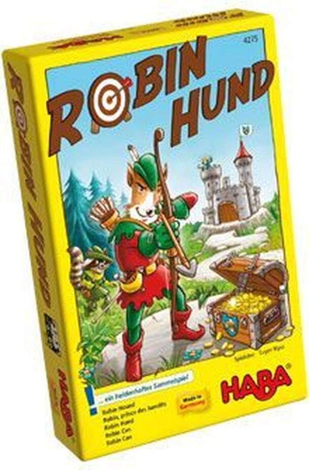 In Robin Hund, a circular track is laid out using tiles. Two robber cards are placed openly in the middle. A stack of treasure cards is put at the side. Each player gets a dog-meeple and places it on the castle tile. The active player picks up the two robber cards in the middle and either keeps them or gives them to one or two other player(s). A card may...